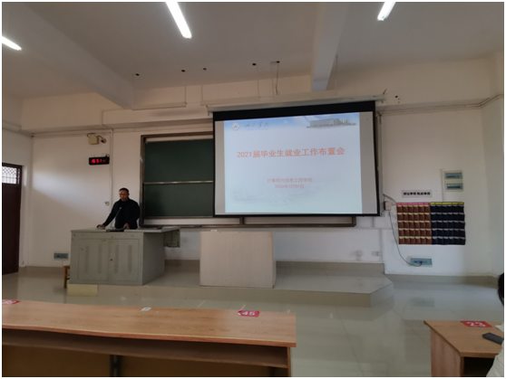 2020年12月9日下午,球王会体育官网召开2021届就业工作布置会,由党委副书记谭黔林主持,全体教职工参加会议。