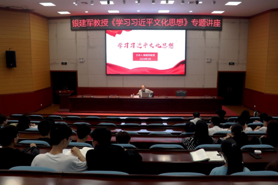银建军教授强调文化自信是一个国家、一个民族发展中更基本、更深沉、更持久的力量,只有坚定文化自信才能激发全民族的创造力和创新精神,推动中国特色社会主义事业不断向前发展。他希望大家坚定文化自信,积极学习、传承和弘扬中华优秀传统文化,包容开放、学习借鉴其他国家和民族的先进文化,积极创新和发展文化,丰富和发展我们的文化体系,建设文化强国,建设中华民族现代文明。