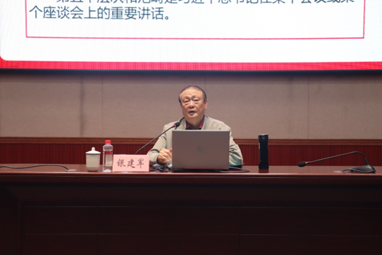 4月10日下午,球王会体育官网邀请银建军教授在弘毅楼一区205报告厅开展《学习习近平文化思想》专题讲座,球王会体育官网青马班成员、党员、入党积极分子、师生代表近200人参加。