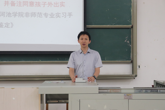 黎军强调了毕业设计和实习的重要性,指出这是同学们将理论知识与实践相结合,提升个人能力的关键阶段。他鼓励学生们积极参与,认真对待每一个环节。他还对实习流程进行了详细的介绍,特别强调了实习期间的安全问题,提醒学生注意个人安全,遵守实习单位的规章制度。他希望同学们能够以积极的态度面对挑战,展现出自己的最佳水平。