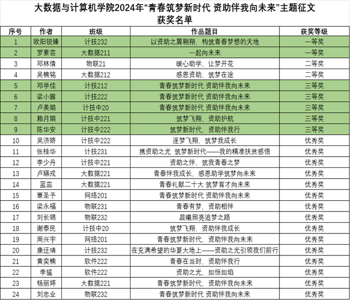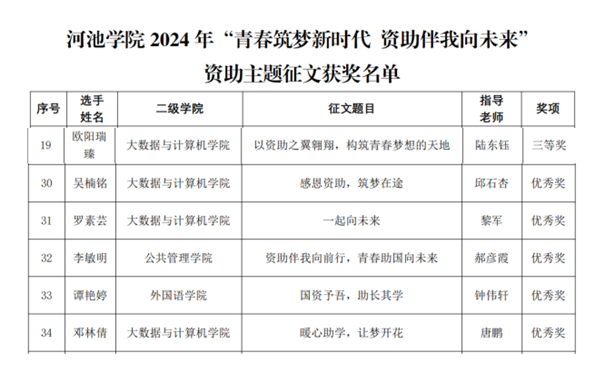 此次征文比赛不仅为同学们提供了展示自我、分享故事的平台,也进一步增强了学生们对国家资助政策的认识和感激之情。希望通过这样的活动,激励更多学生珍惜学习机会,积极进取,用知识和才能回报社会,为实现个人梦想和国家发展贡献力量。(作者:魏志荣 校对:黎军 审核:钟友坤)