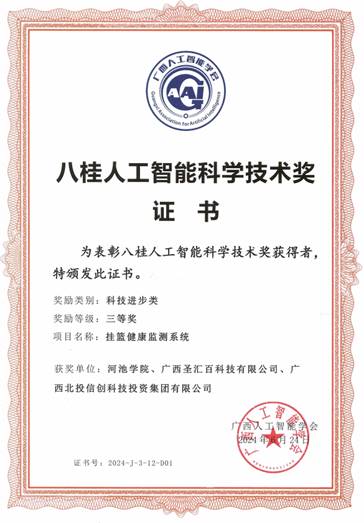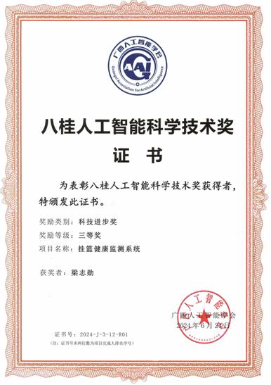 7月6日,球王会体育官网副院长(主持行政工作)梁志勋一行参加了在广西钦州举办的广西人工智能学会年会。球王会体育官网与广西圣汇百科技有限公司、广西北投信创科技投资集团有限公司共同研发的“挂篮健康监测系统”荣获八桂人工智能科学技术奖三等奖。展现了球王会体育官网在校企合作、服务地方与工程建设安全监测领域的创新能力。