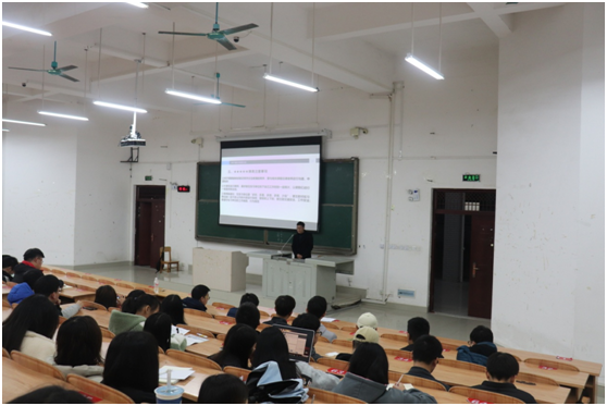吴副院长从指导老师、实习单位确定、实习时间、实习材料、填表注意事项、实习管理系统及学分这六方面给同学们讲了关于实习的相关内容。在会上,吴副院长也给了同学了提了建议,在实习单位里面要多做多听多学习,遵守实习单位的规章制度。