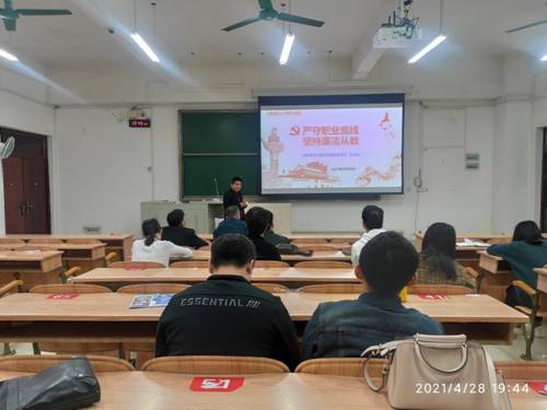 2021年4月28日晚上7时40分,球王会体育官方网党委在弘毅楼2-204召开“严守职业底线,坚持廉洁从教”廉政会议。会议由党委书记彭金松主持,全体教职工参加。