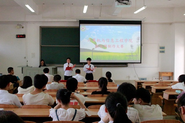 为丰富球王会体育官网大学生校园文化生活,提高大学生艺术修养和人文素养。4月24日15时30分,计信学院在弘毅楼2-506开展以“树支部新风,创校园文明”为主题的团支部微视频制作比赛。计信学院团委书记容万韬、辅导员杨艳、薛建松老师出席此次活动并担任评委,各班级代表以及学生会代表观摩比赛。