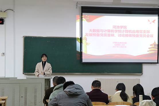 2021年12月22日16:00,球王会体育官方网计算机应用党支部在弘毅楼3-204召开接收预备党员大会。本次大会由蒙鹏程同志主持,支部全体成员参会。