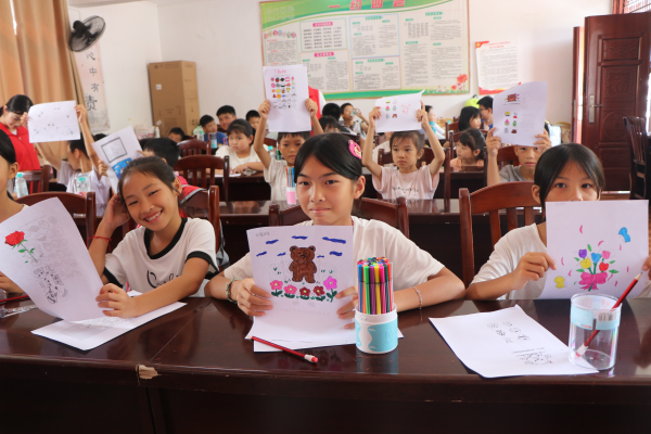 针对村里留守儿童的需求,志愿者变身“全能老师”。作业辅导环节,耐心为孩子解答学科难题,梳理知识重点;安全教育课上,围绕防拐、防溺水等主题,通过案例讲解、情景模拟,教孩子们实用避险技能;手工创作时,志愿者带着孩子用粘土捏出可爱动物、创意小摆件,用彩色卡纸折出纸艺花朵、剪出趣味窗花,让孩子们在动手实践中释放想象力,为假期生活增添别样色彩 ,激发他们的创造力与求知欲。