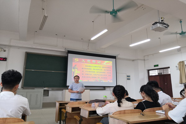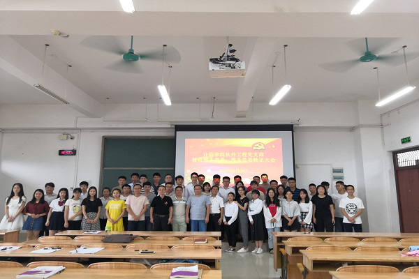 最后,发展对象、预备党员以及正式党员进行了入党宣誓,随着正气凛然的入党宣誓结束,支部书记肖辉辉上台总结时表示,入党宣誓旨在培养优秀党员,让更多的新成员融入党,同时有助于广大学生铭记入党誓言,希望这9位同志能够在党的领导下,能够更加严格地要求自己,不断增强理论学习,增强自身的使命感。会以结束后,计信学院软件工程学生党支部全体成员进行了合影留念。