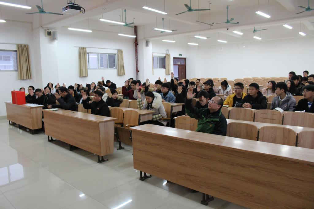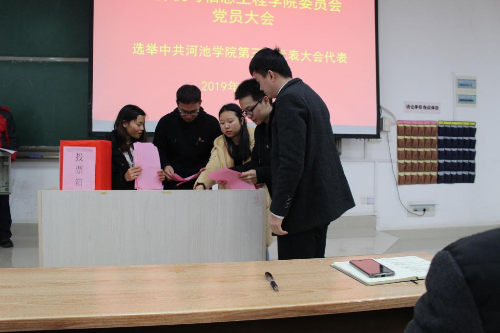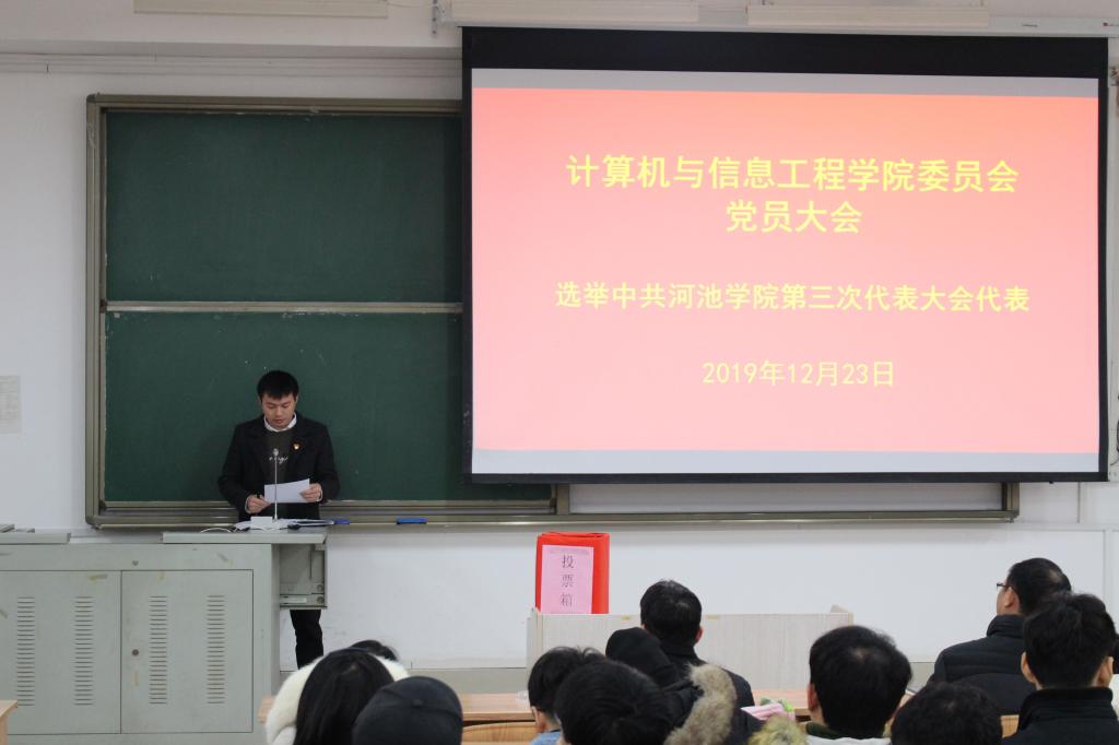 12月23日下午5点,计算机与信息工程学院党委在弘毅楼2-507教室召开党员大会,选举本党委出席中国共产党球王会体育官方网第三次党代会的代表。本次大会由计信学院党委书记彭金松主持,球王会体育官方网副校长覃拥灵等42名党员参加。