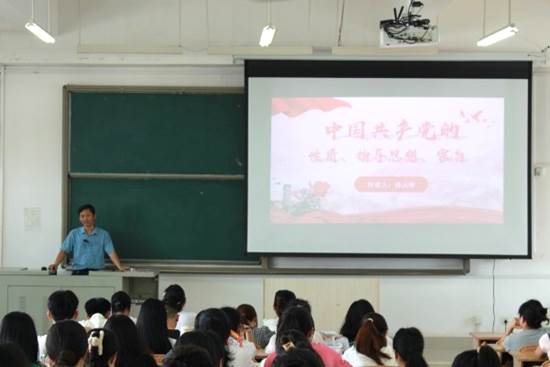 首先,杨云峰通过《中国共产党章程》指明中国共产党的性质,接着阐明了中国共产党以马克思列宁主义、毛泽东思想、邓小平理论、“三个代表”重要思想、科学发展观、习近平新时代中国特色社会主义思想作为自己的指导思想。最后强调党的宗旨是全心全意为人民服务。坚持全心全意为人民服务的宗旨,是巩固党的执政地位的现实需要。他强调,我们的党员和学生干部都要牢记为人民服务的宗旨,在生活中践行,起到先锋模范带头作用。(作者:欧阳瑞 拍摄:欧阳瑞 校对:李家欢 审核:黎军)