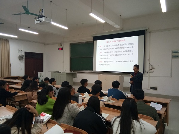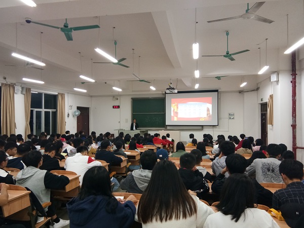 10月27日晚上7点,计信学院党委组织2019级新生在东区弘毅楼2-501教室、2-503教室以及2-506教室进行入党启蒙教育。由计信学院党委书记彭金松、副书记谭黔林以及组织委员容万韬分别担任主讲,2019级全体学生到场聆听。