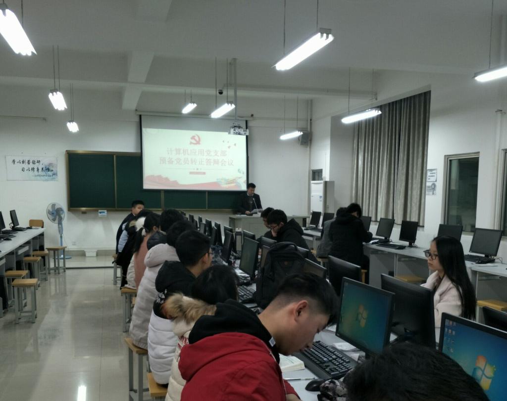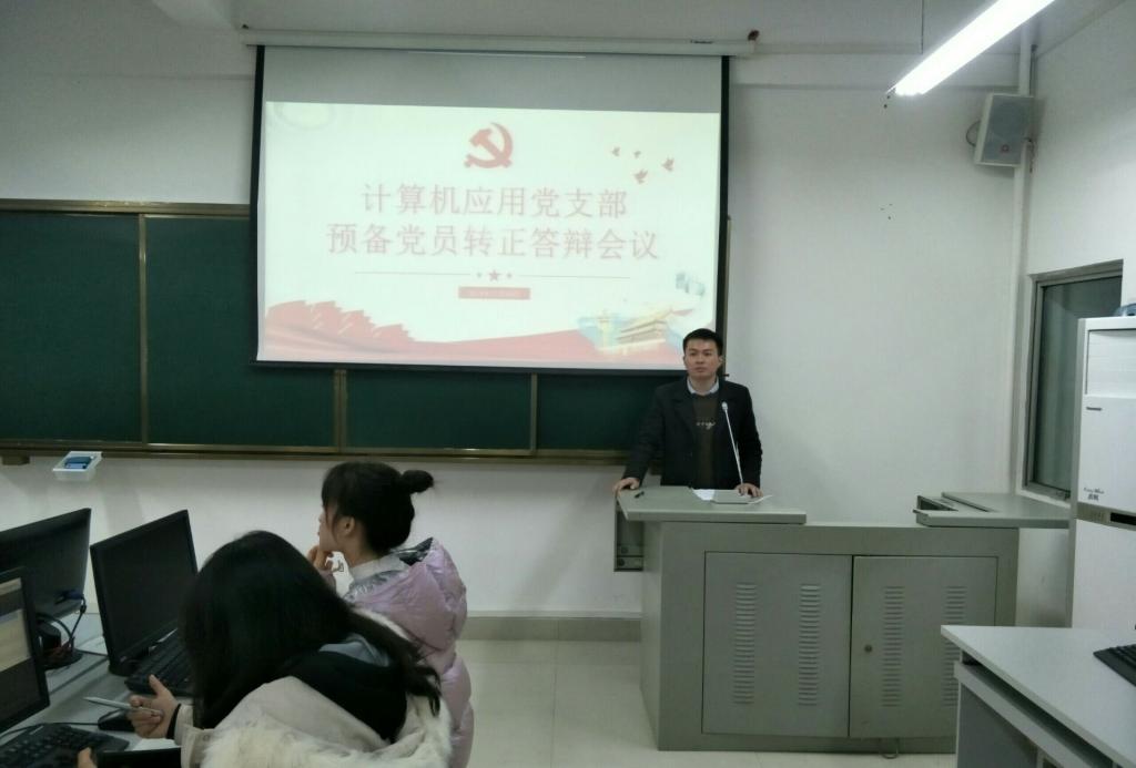12月8日晚上7时,计算机应用党支部在逸夫楼404教室召开预备党员转正式党员会议,讨论预备党员韦江锋、周洁、佘青春的转正问题。本次会议由支部副书记薛建松主持,支部全体在校党员及预备党员参会。