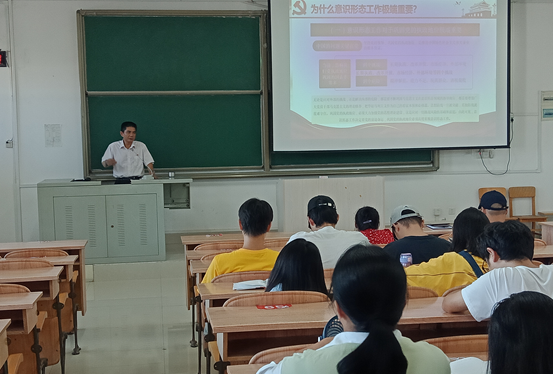 首先,支部书记彭金松讲述了意识形态的概念及意识形态工作的重要性,随后就意识形态工作的主要任务、加强意识形态工作的阵地建设、加强意识形态工作的有效措施、正确把握意识形态工作中的若干关系四个方面来说明当下我国意识形态工作的形势。