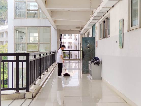 活动中,同志们分组分工,有序配合,除了对教室的地面和窗户进行深度清洁,对平时忽略的卫生盲区如门上的贴纸污渍也进行了清理,任何角落都不马虎,不放过任何一个死角。经过共同努力,教室桌椅摆放整齐,窗明几净,一尘不染,焕然一新。同志们不怕脏、不怕累,身体力行服务师生,为学生们树立了榜样。
