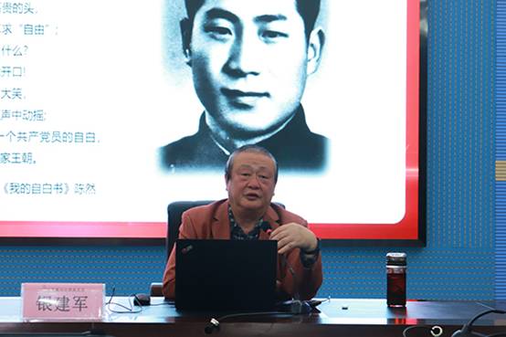 银建军教授以“伟大建党精神——中国共产党的精神之源”为主题,从伟大建党精神形成的基础和条件、伟大建党精神的深刻内涵、伟大建党精神是中国共产党人精神谱系的历史源头和高度凝练、在新时代弘扬伟大建党精神四个方面阐述了伟大建党精神。期间,银建军教授用庄严、洪亮的声音朗诵了陈然同志的《我的自白》,引起在场听众的涛涛热血和爱国情怀。最后,银建军教授提到,人无精神而不立,国无精神而不强,我们要继承和弘扬伟大建党精神,真正把对党忠诚作为实现共产党人首要的政治品质,始终把人民放在心中最高位置,随时准备为党和人民牺牲一切。
