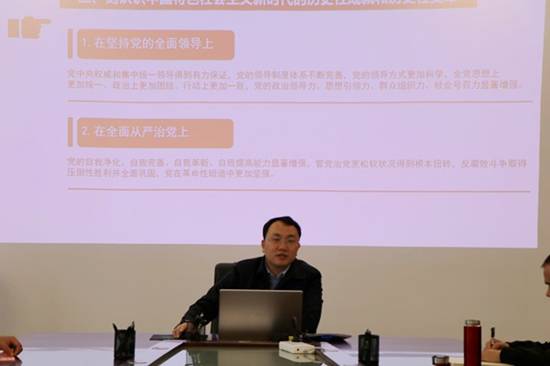 他提到,我们党员同志应该学习贯彻落实好全会精神,从党的百年奋斗历程中汲取智慧和力量,思考自己如何成为后继人,联系实际将理论用于解决实际问题中。