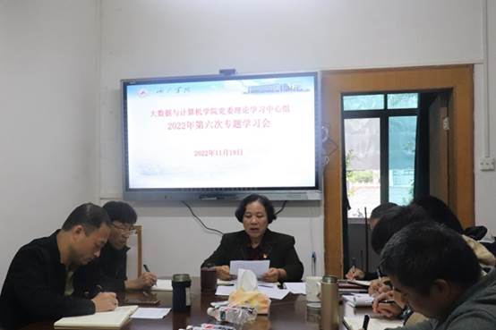 11月18日上午,球王会体育官方网党委理论学习中心组在明德楼305室召开2022年第六次专题学习会。本次专题学习会的主题是“深入学习领会党的二十大精神”。学院党委理论中心组成员参加了学习会。会议由学院党委书记魏菱主持。