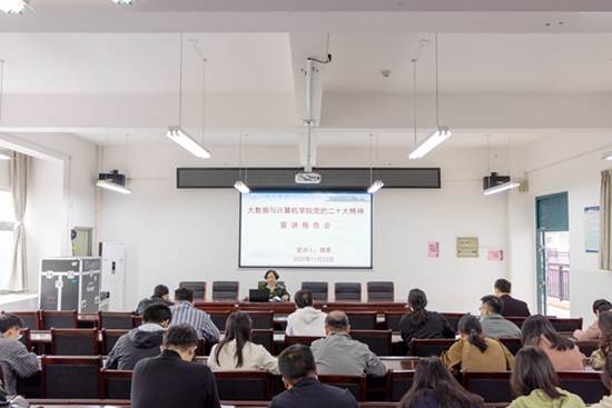 2022年11月23日,球王会体育官方网在逸夫楼407召开党的二十大精神宣讲报告会。报告会由学院党委书记魏菱宣讲,全体教职工聆听报告。