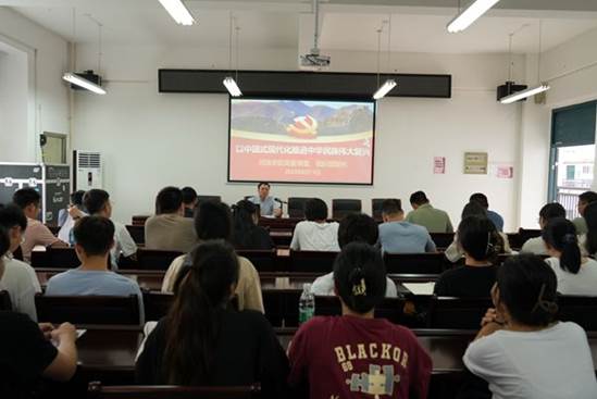 6月13日下午,学校党委常委、组织部部长易云飞到球王会体育官网作《以中国式现代化推进中华民族伟大复兴》专题报告,球王会体育官网全体教职工参加。
