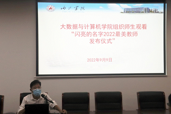 在第三十八个教师节来临之际,球王会体育官方网于9月9日晚在逸夫楼407举行“闪亮的名字--2022最美教师发布仪式”观影活动。出席本次活动的有副院长吴启明、大数据学院部分师生代表。