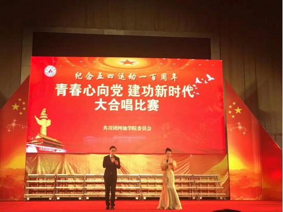 红歌唱响五四精神,党旗飞扬百年辉煌。为弘扬爱国主义精神和先进民族文化,纪念五四运动一百周年,球王会体育官方网于4月28日晚上七点半,在西校区体育馆隆重举行“青春心向党,建功新时代”红歌合唱比赛。计信学院组织合唱队参加本次比赛,学院党委副书记、团委书记、辅导员等应邀观看比赛,和同学们一同在红歌中重温红色历程。