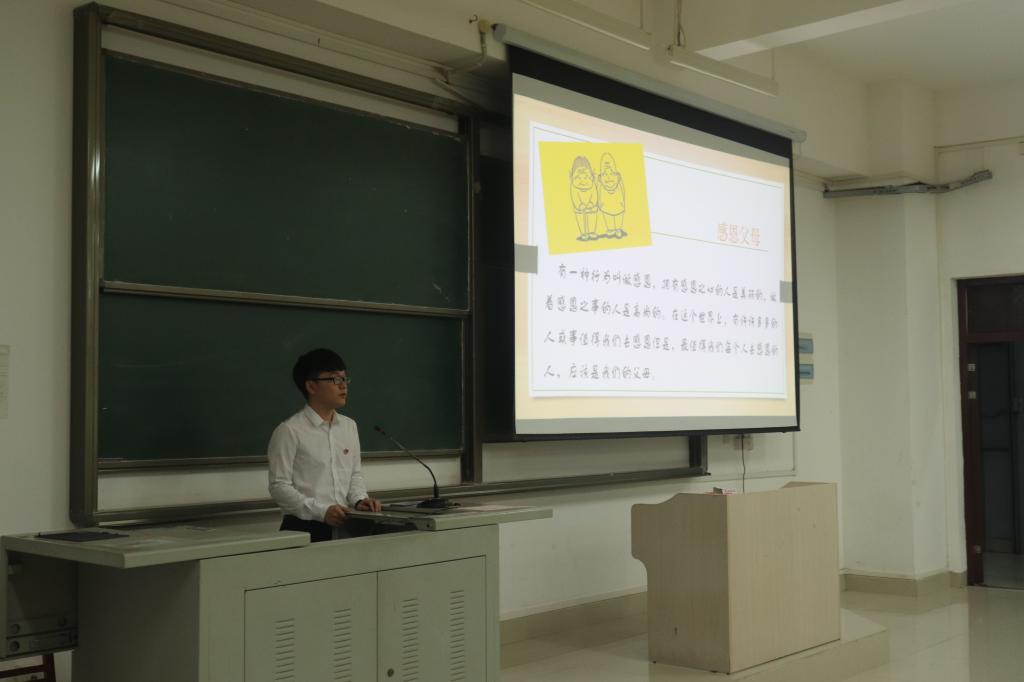为更好弘扬中华民族优秀传统美德,培育和践行社会主义核心价值观。球王会体育官网于6月23日晚在弘毅楼2-501、2-503、2-506、2-507及3-201教室开展以“知恩于心,感恩于行”为主题的党员宣讲活动,本次宣讲由廖颉等9名学生党员主讲,计信学院全体在校学生到场聆听。