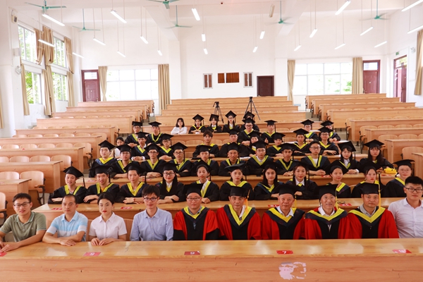 首先,院长林芳代表学院行政,向全体毕业生表示热烈的祝贺和深切的祝福,也向辛勤培育同学们的老师和家长致以衷心的感谢和崇高的敬意。他从四年来学生成长和学校发展的点滴谈起,充分肯定了2021届毕业生在校期间的各方面表现。他希望同学们奔赴工作岗位后要胸怀理想、志存高远,把所学知识与培养道德情操结合起来,求真力行,堂堂正正做人,勤勤恳恳做事。同时也希望同学们把个人的人生追求同实现中华民族伟大复兴的中国梦紧密联系在一起,扎根基层,服务人民。紧接着,主持人赵家祺老师对同学们送上了毕业寄语:希望即将步入社会的毕业生们珍惜同窗友谊,谨遵师长嘱托,牢记母校期待,启航新征程,奋进新时代,书写新辉煌。讲话结束后,在台下的一片热烈掌声中,同学们有序的上台完成学士学位授予仪式,并与老师们合影留念。