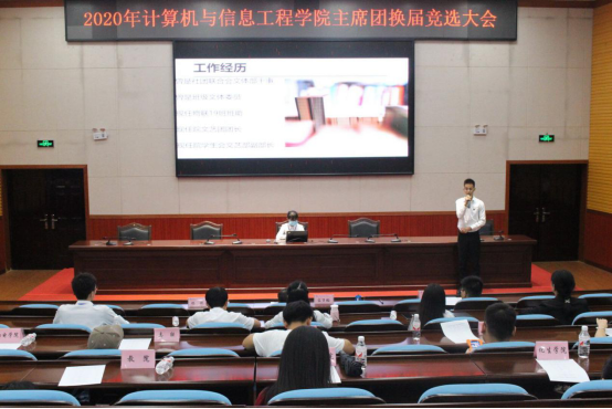 为加强计信学院团委、学生会的组织管理,充分发挥球王会体育官网团委、学生会服务学校、服务同学的主体作用。73日晚,计信学院弘毅楼1-205举行主席团换届竞选大会。计信学院团委书记容万韬老师、兼职团委副书记赵家祺老师、辅导员杨艳老师出席了本次会议,学校四大组织”(校团委、校学生会、校志联、校社联)及各二级学院代表、18级计信团学组织全体成员、18和19级班委组成的大众评委参加了此次会议。