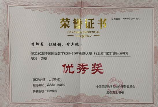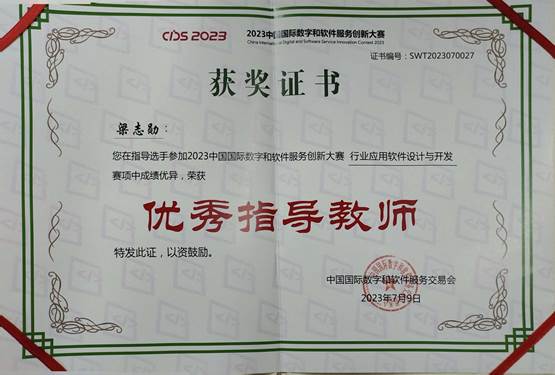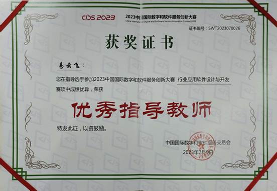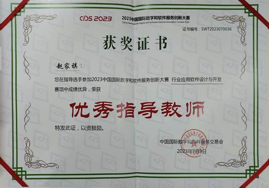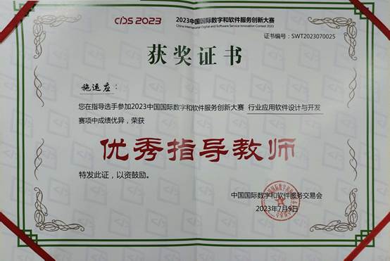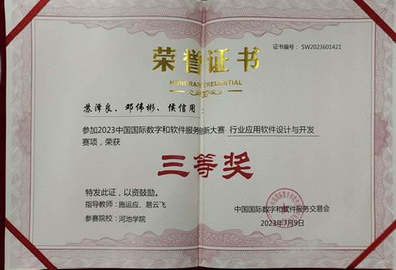 近日,收到从中国国际数字和软件服务交易会发来的获奖证书,球王会体育官网球王会体育官方网在2023中国国际数字和软件服务创新大赛全国总决赛中获得全国三等奖两项,优秀奖一项,优秀指导教师四项。